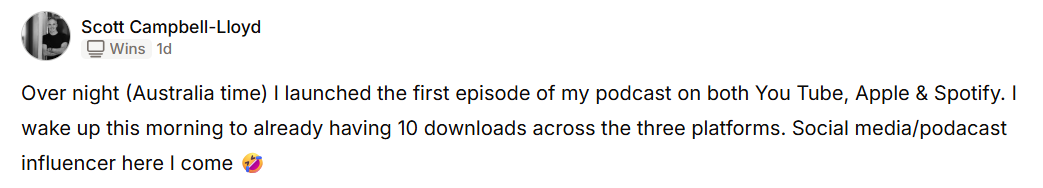 "Since joining the program, I’ve launched my brand, built a website, started growing my social media, and launched a podcast.